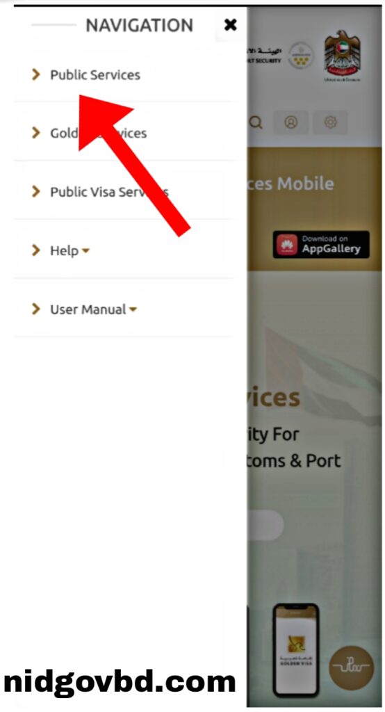 - ভিসা চেক করার জন্য প্রথমে আপনাকে ICP Smart Services এই ওয়েবসাইটে ভিজিট করুন।সাইটে প্রবেশ করার পর Public Service অপশনে ক্লিক করুন।